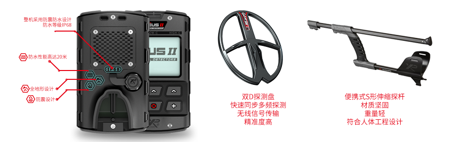 9、潜水设计:选配骨传导耳机,支持在水下20米深度进行潜水探测,搭载锁定按键功能,有效防止水压变化及误操作对设备性能的影响。