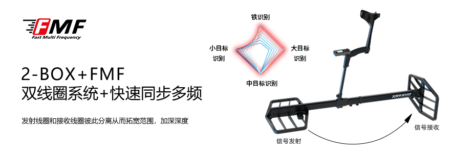 2-Box双线圈系统设计是这款产品的核心亮点,这种设计理念巧妙地将两个线圈相互配合,形成一种互补机制,使得整套探测设备在灵敏度、精准度和稳定性方面得到大幅提升。在实际应用中,这一设计使得设备在复杂环境下也能保持高度的可靠性。搭配FMF主机升级至V2.0中国定制版操作系统,它的界面简洁直观,操作便捷,让使用者能够更快地熟悉和掌握。